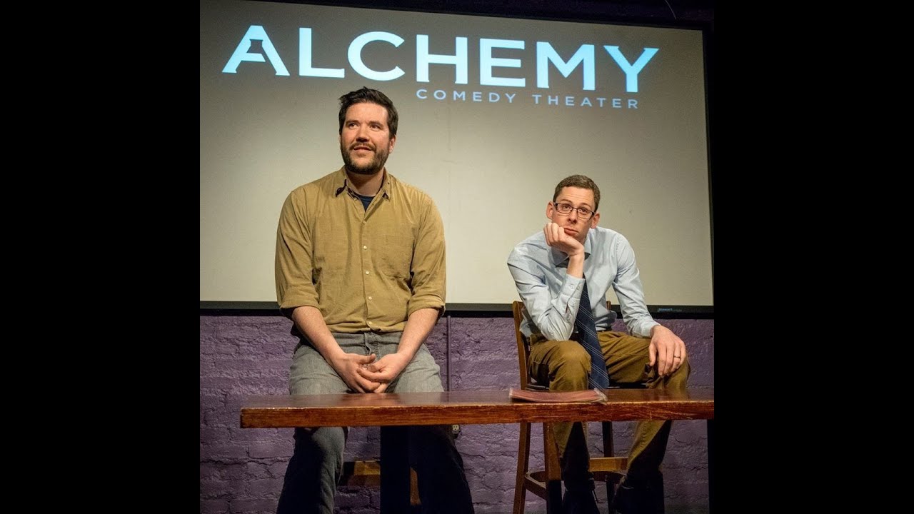 Harrison Brookie and Jason Underwood, both founding performers at Alchemy Comedy, perform Speakeasy, their long-running duo improv show. The format places two characters in a single bar setting for a full hour, building an improvised one-act play from that premise.