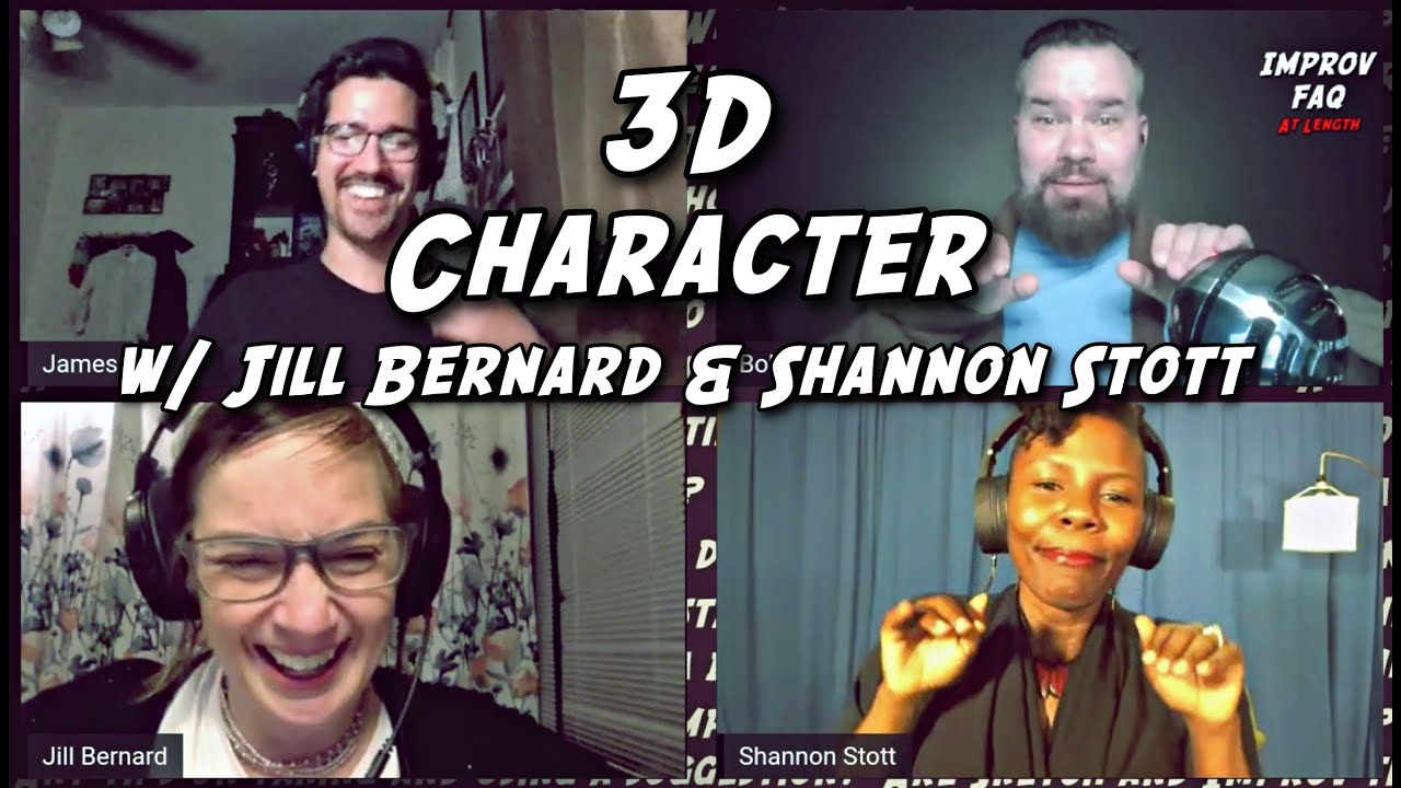 Jill Bernard and Shannon Stott join Improv FAQ to discuss building three-dimensional characters in improv. Topics include giving exaggerated or cartoonish characters emotional depth, drawing from personal experience and real people as character sources, and whether it is appropriate to pause a scene to check in with a scene partner.