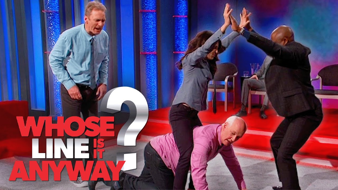 A short clip from Whose Line Is It Anyway?, the long-running short-form improv television series hosted by Aisha Tyler with regular performers Ryan Stiles, Wayne Brady, and Colin Mochrie.